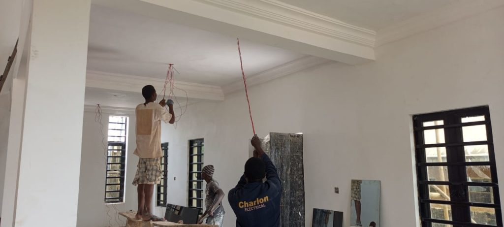 Das Gebäude der Eventhalle und auch der zweite Stock der Ausbildungsstätte sind fertig gestellt. Die grundlegende Elektrik wurde bereits im August verlegt. Nun geht es noch an den Einbau von Strom, Beleuchtung und Klimatisierung wenn zukünftig mehrere hundert Menschen gemeinsam in den Räumen feiern werden.